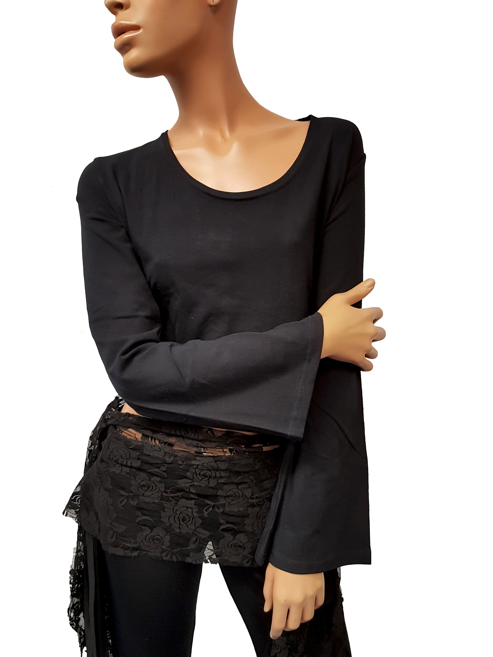 Buikdans top in zwart met trompetmouwen 2XL 3XL