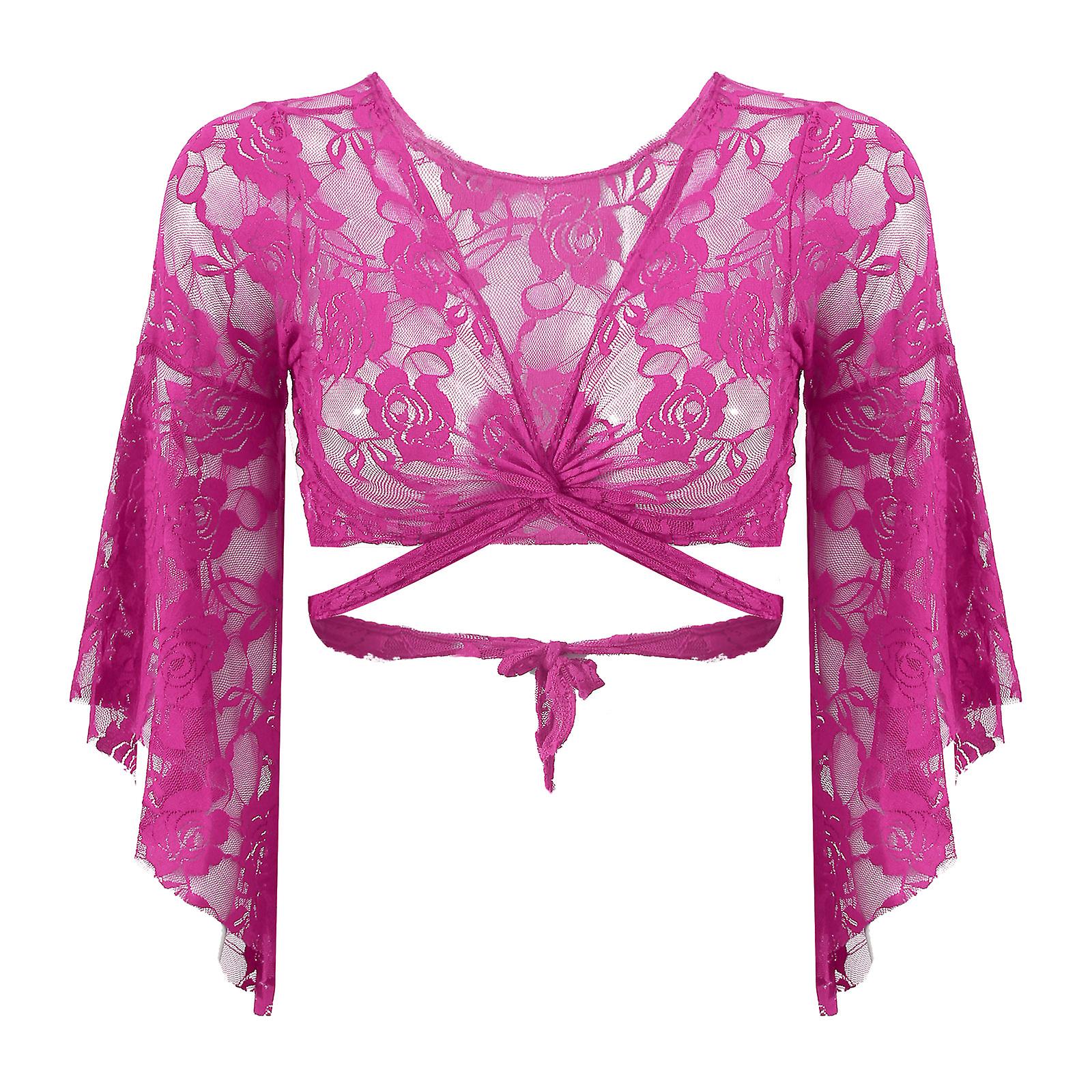 De top bestaat uit geheel kanten stretch stof in fuchsia