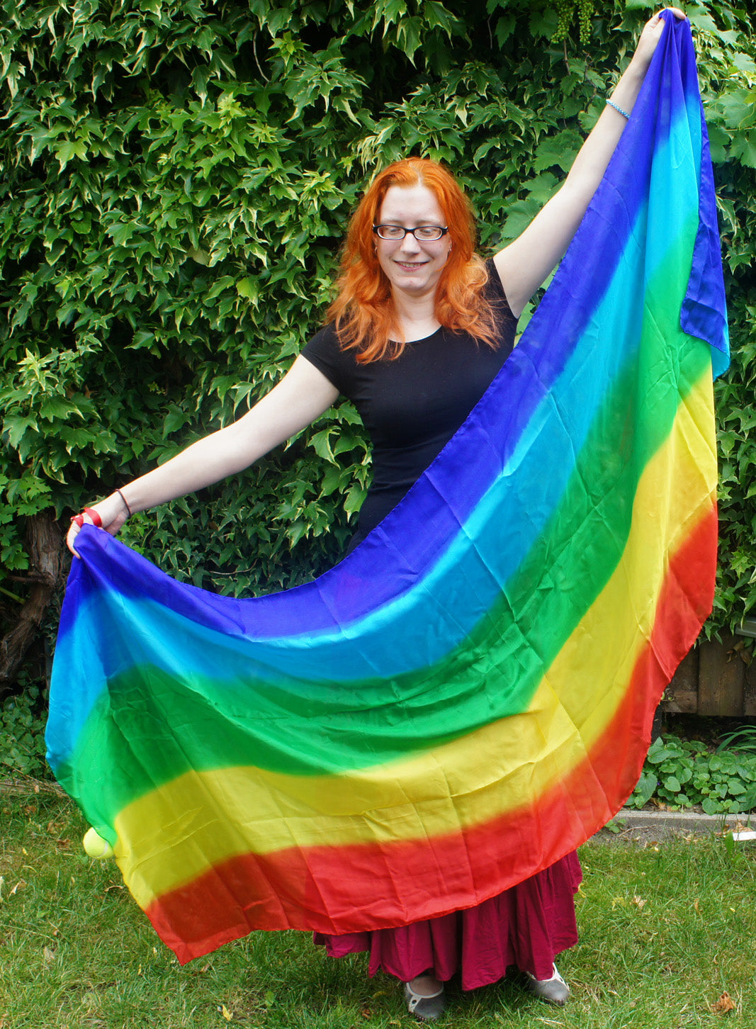 Zijden buikdans poi in verschillende felle kleuren 'verticale strepen'