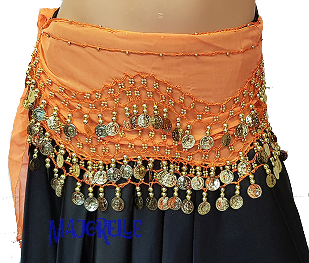 Heupsjaal oranje met gouden muntjes