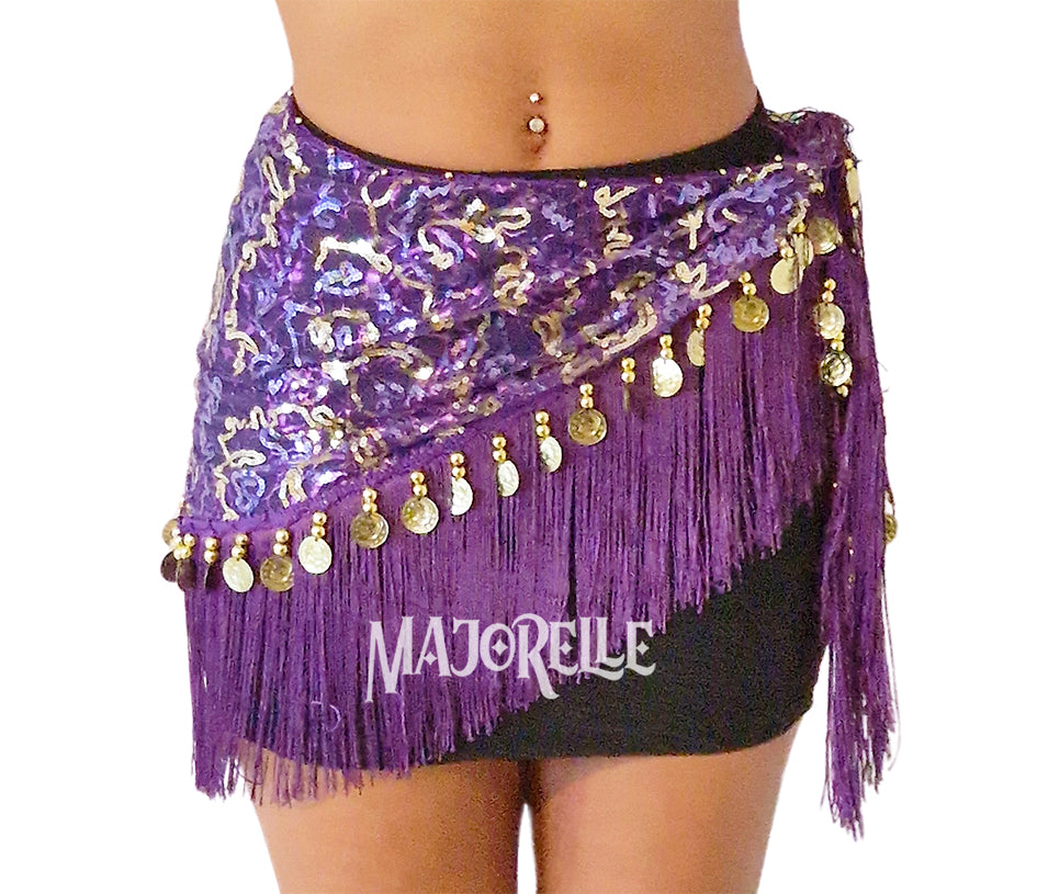 Deze prachtige buikdans heupsjaal met lijntjes van kleine pailletjes en gouden munten is een perfecte toevoeging aan je buikdansoutfit.