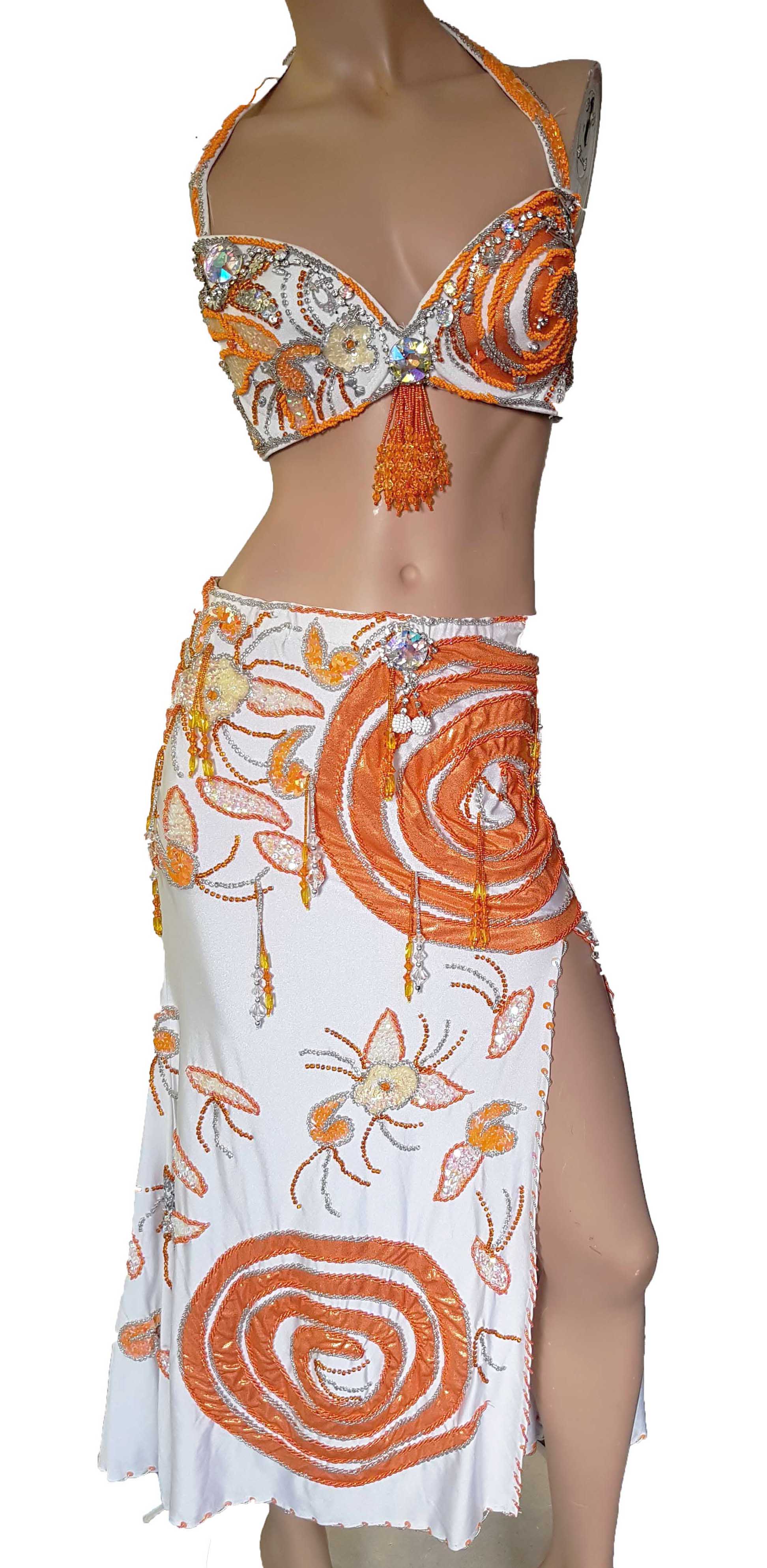 Buikdanskostuum Nadrah in wit met oranje