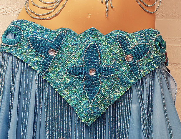 Kostuumbelt Dalal turquoise, prachtig bewerkt met vele pailletjes