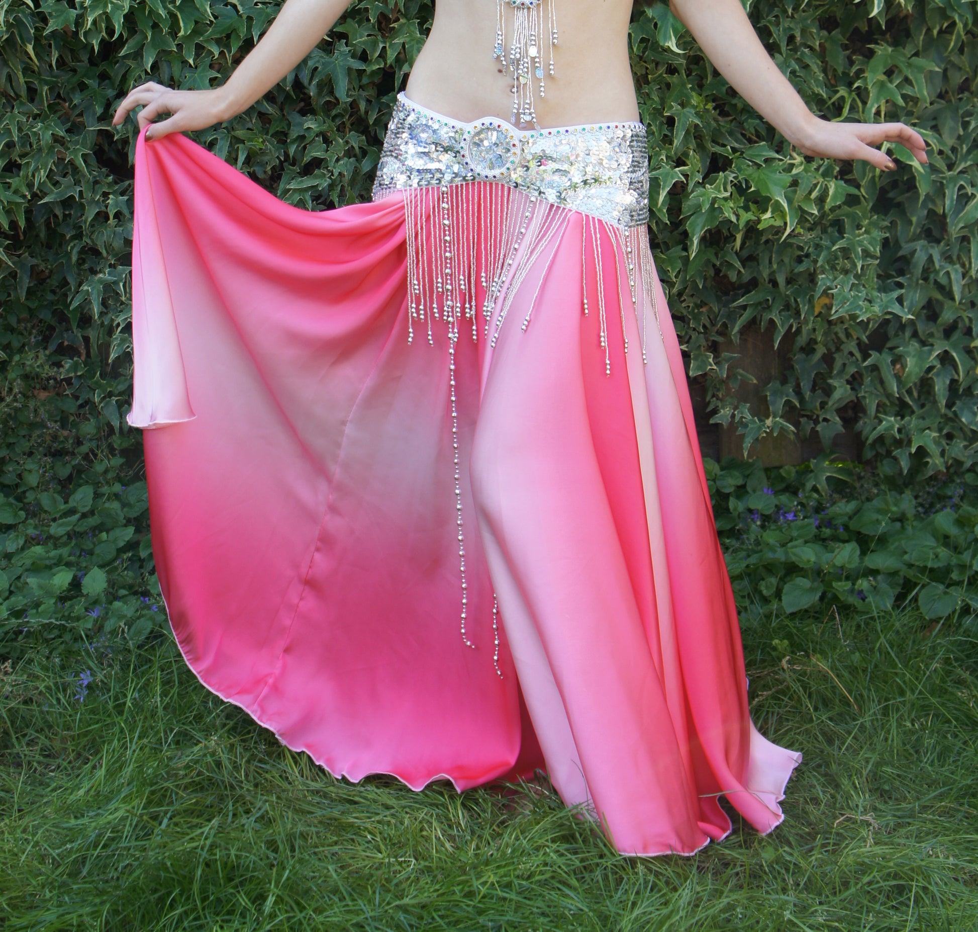 Mooie rok gemaakt van kunstzijde. Kleurverloop in roze/wit.