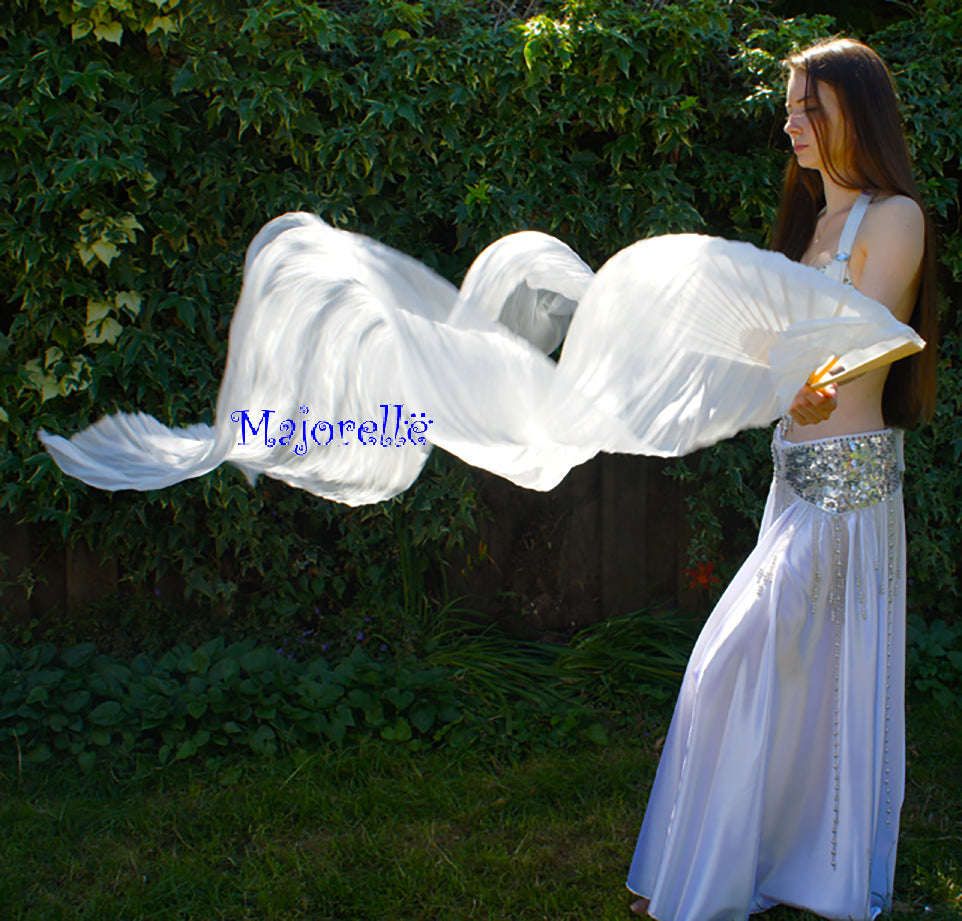 Zijde buikdans sluierwaaiers / fans in wit. Lengte 150cm.