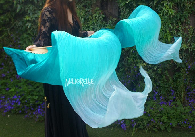 Zijde sluierwaaier in pauwengroen met kleurverloop 150cm