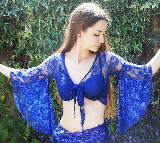 Top bestaat volledig uit kant. Kleur korenblauw