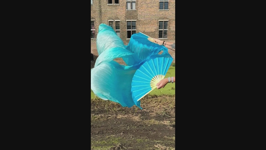 Zijde sluierwaaier in aqua met kleurverloop, lengte 150cm,