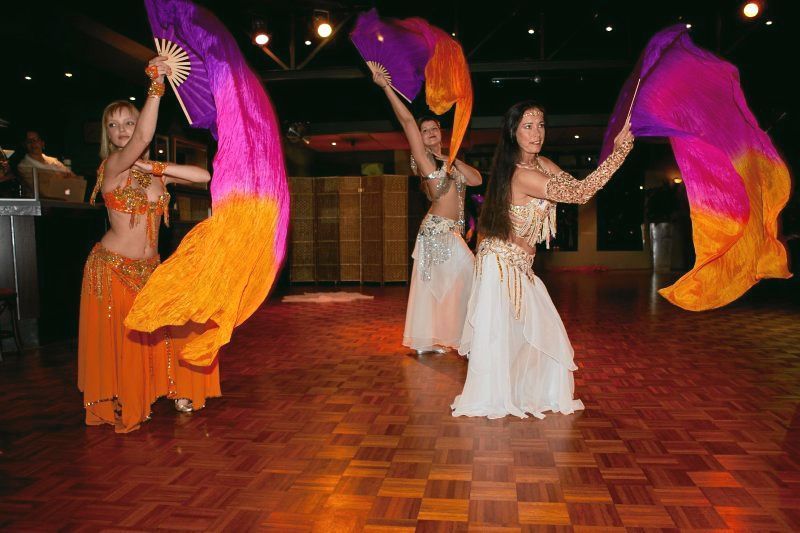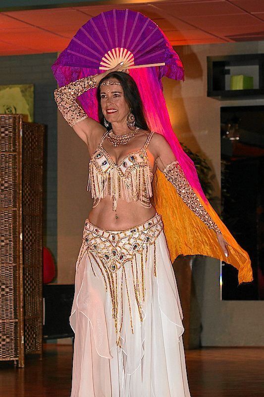 Zijde sluierwaaier in paars fuchsia en oranje,
