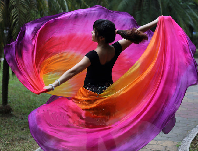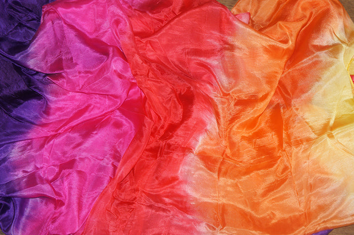 Halfronde zijde sluier in geel oranje rood fuchsia paars
