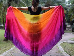 Hele mooie halfronde zijde sluier in geel oranje rood fuchsia paars.